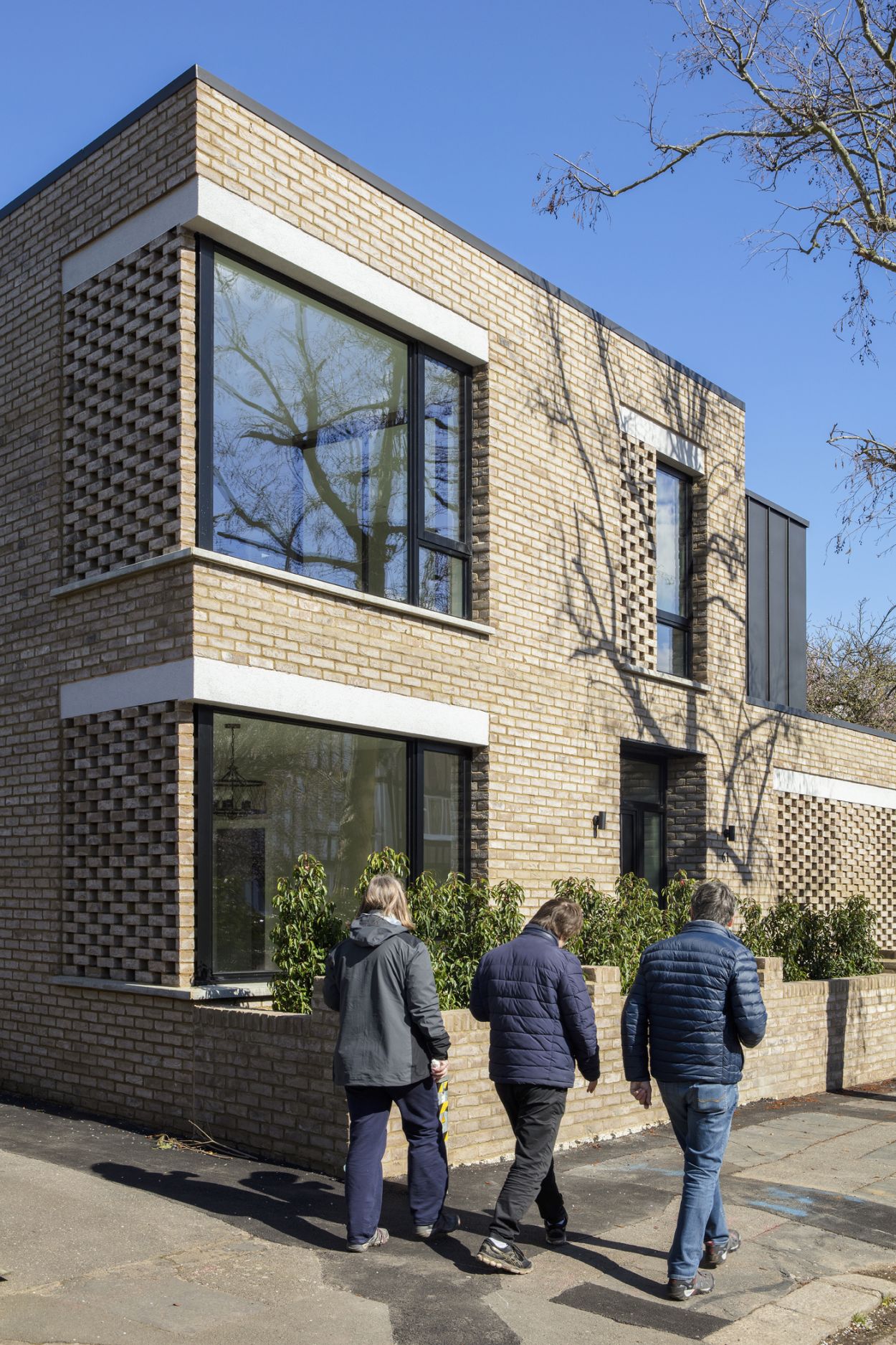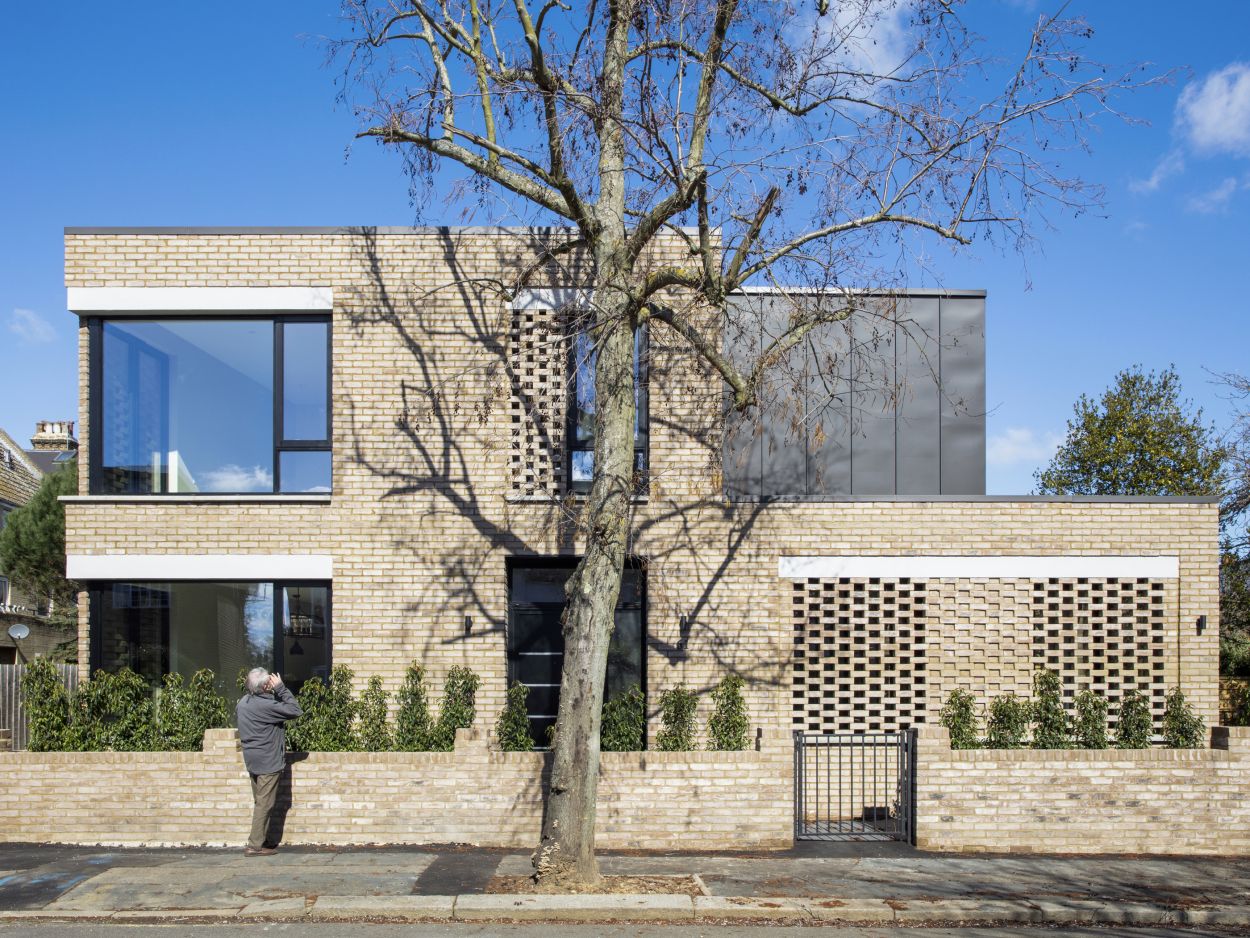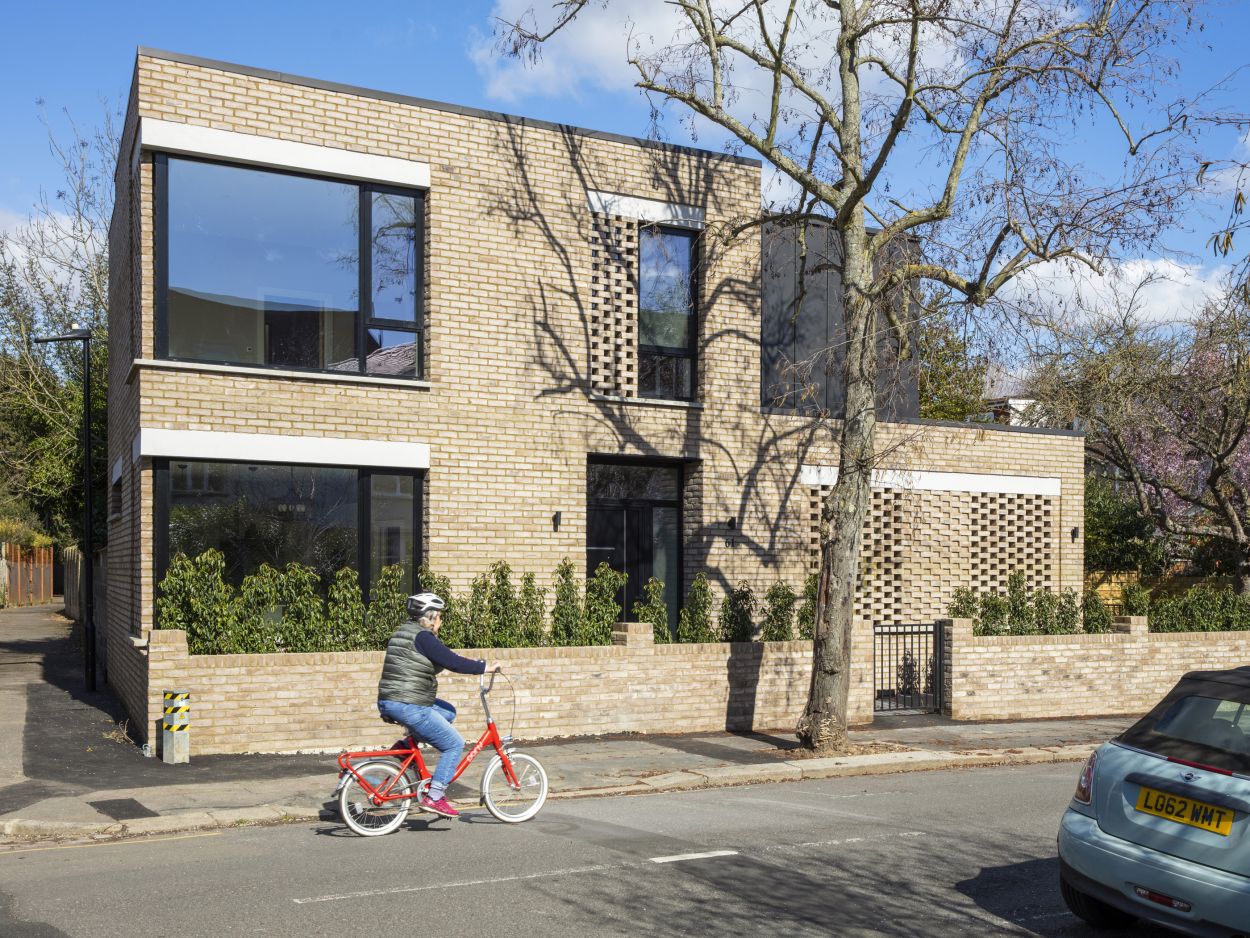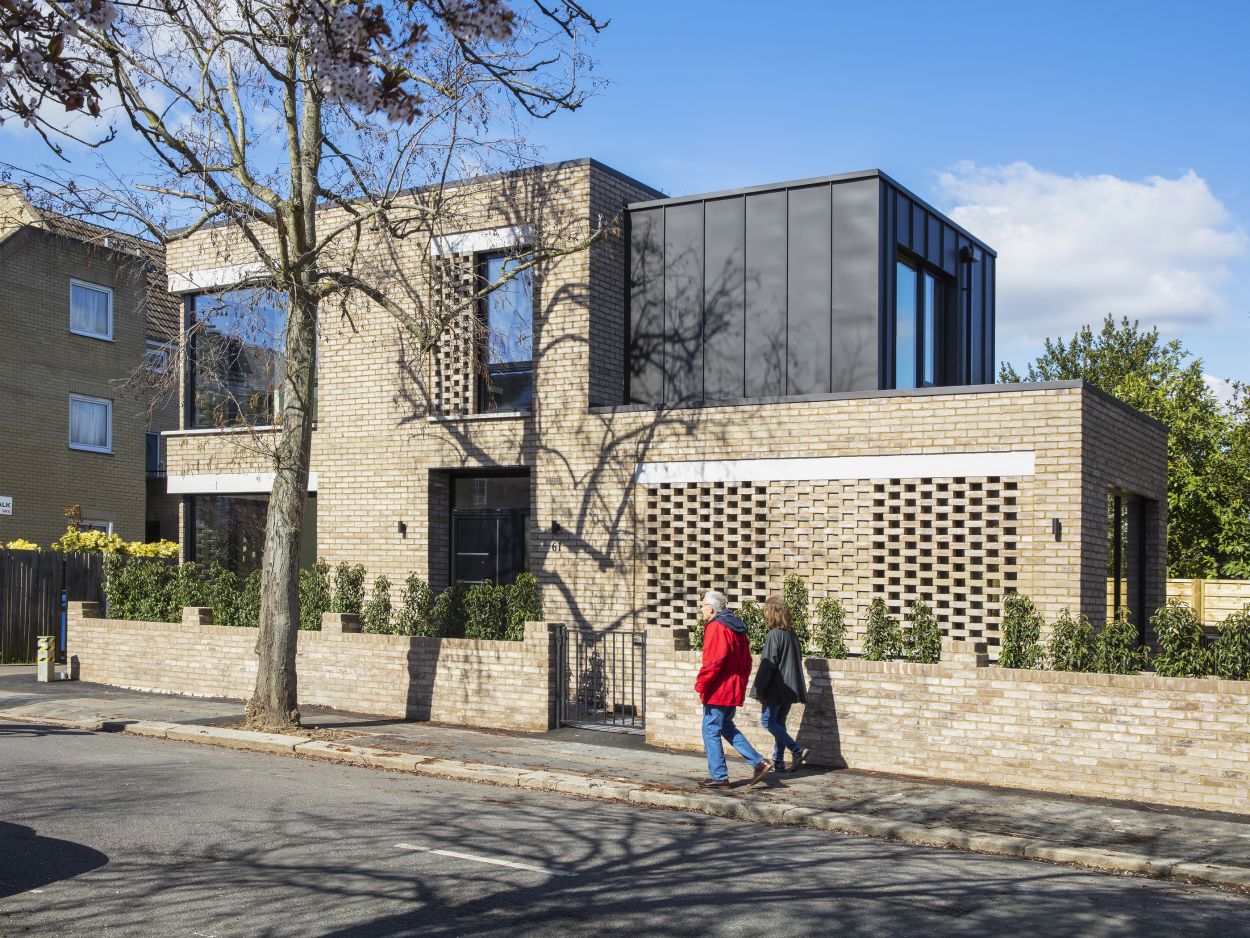 The proposed family house over basement, ground and first floors incorporates a mixture of private terrace areas, generous courtyard spaces linked by a staircase at basement level and bridge at ground level. Deep set windows wrap around the corner of the facades to acknowledge the context relationship. The windows are further set behind a layer of hit and miss brickwork with recessed stone lintels to articulate the openings.