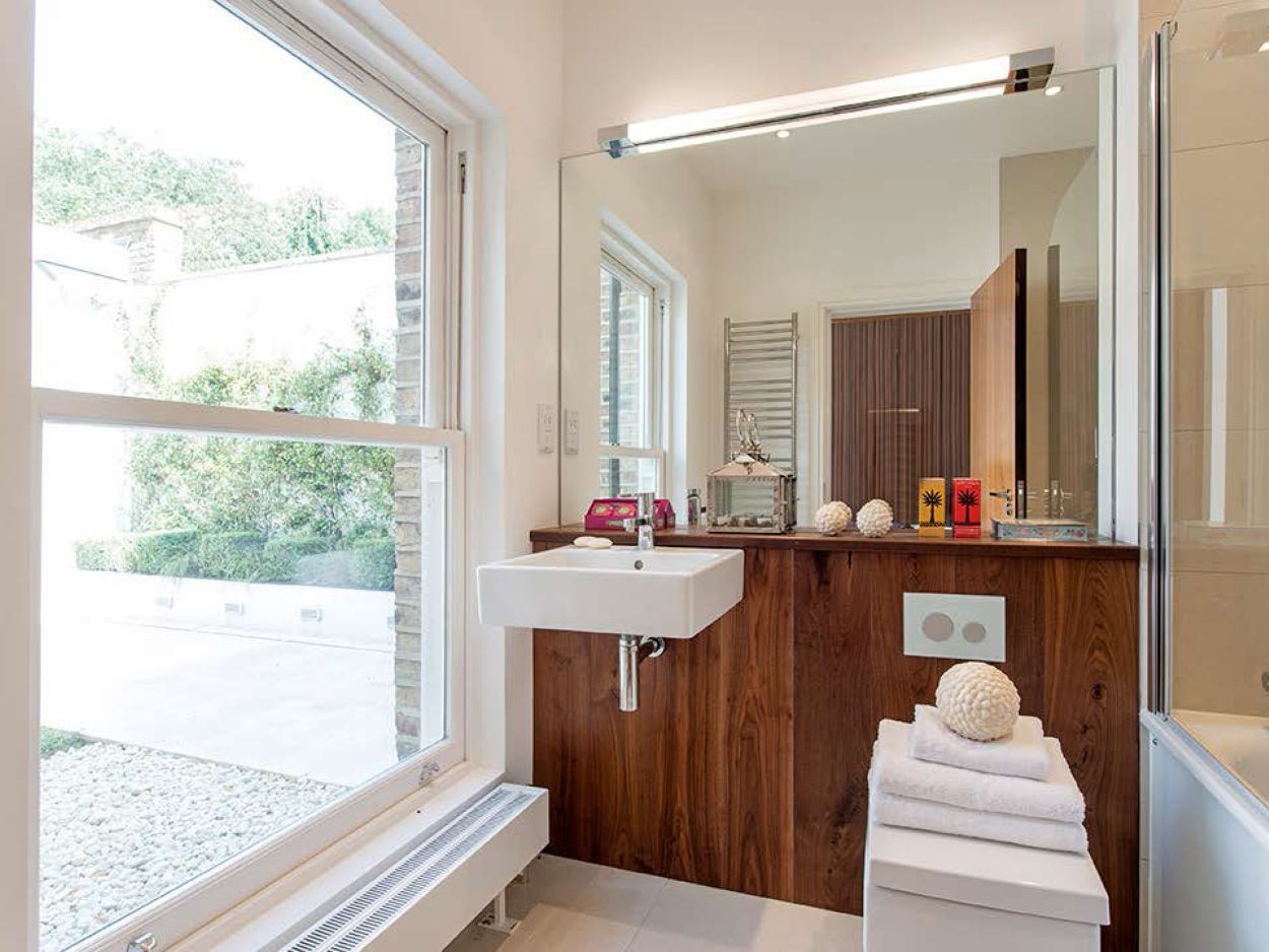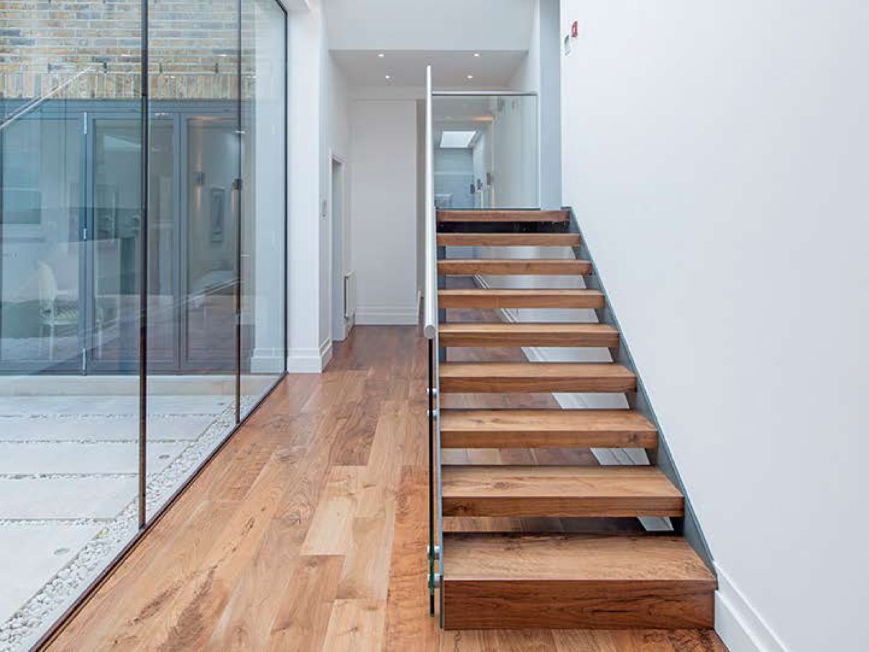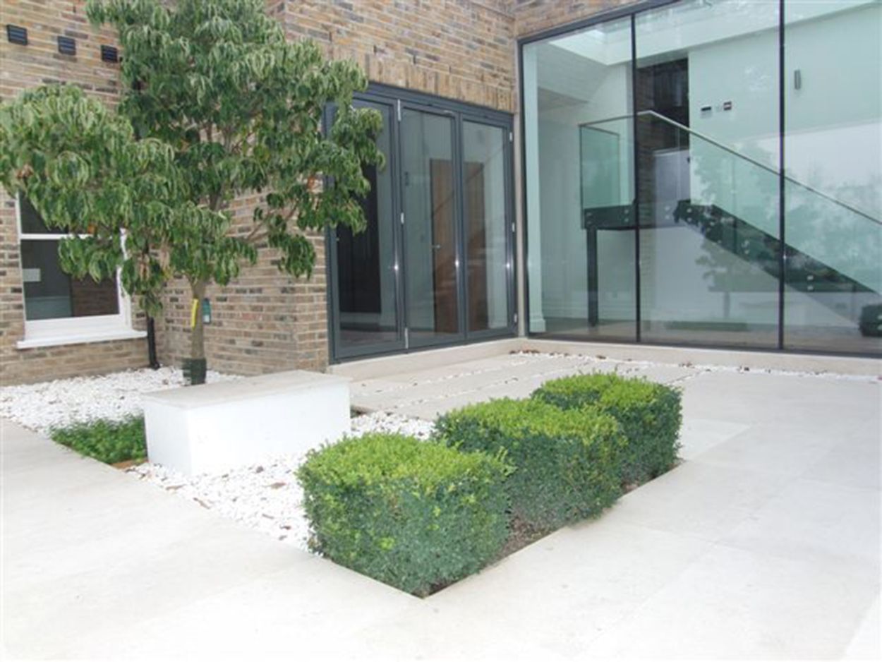 A 2000 sq ft apartment was created by demolishing the garages behind a large Victorian mansion and partly excavating the garden. The accommodation comprises of two bedrooms and generous reception space arranged around a landscaped courtyard garden.