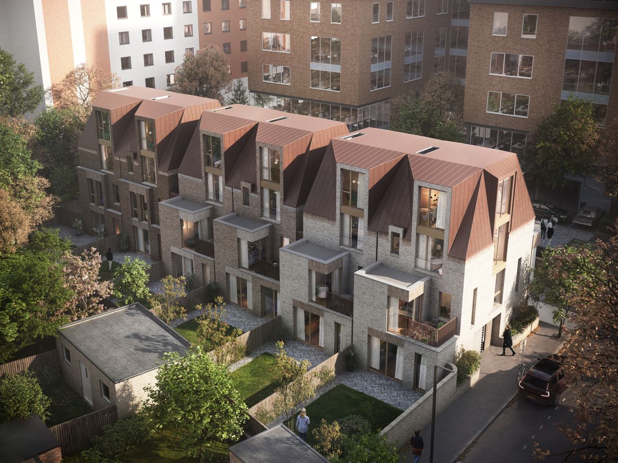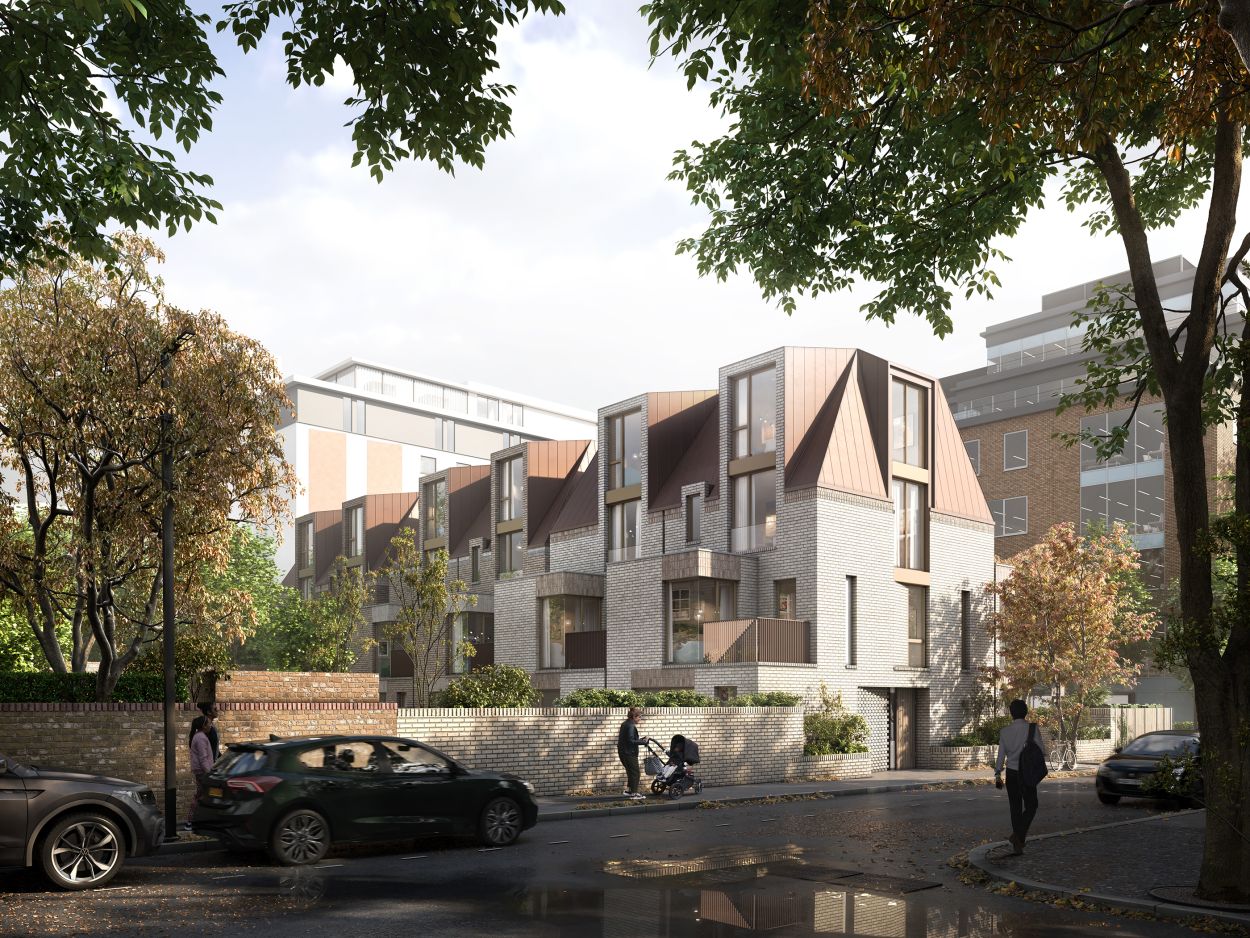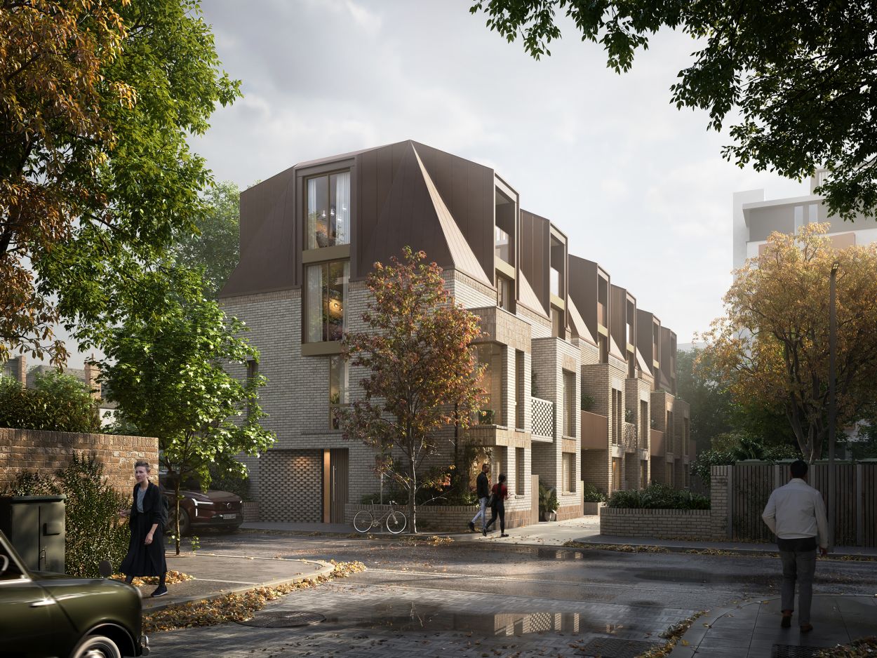 Whilst the typical historic typology of a terrace is uniformity, the strategy for this terrace includes subtle differences in the architectural elements. These include window fenestration, balustrade materiality, brick detailing for openings, tonal brick colours for the facades, and specific elements. The differences retain the uniformity of a terrace whilst also providing further interest to the facades and distinct character to each dwelling. The eaves line and dormer windows incorporating double storey windows help to alter the scale and levels within the dwellings. The spaces between the dwellings at the upper floors give the appearance of a semi-detached typology and relief to the massing. The part two storey element to the front of the dwellings provides the opportunity to create modest first floor terraces that provides a porch to the entrances. The rear first floor elements help to articulate the facade and retain a rhythm to the terrace with corner windows.
