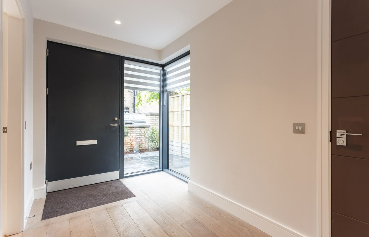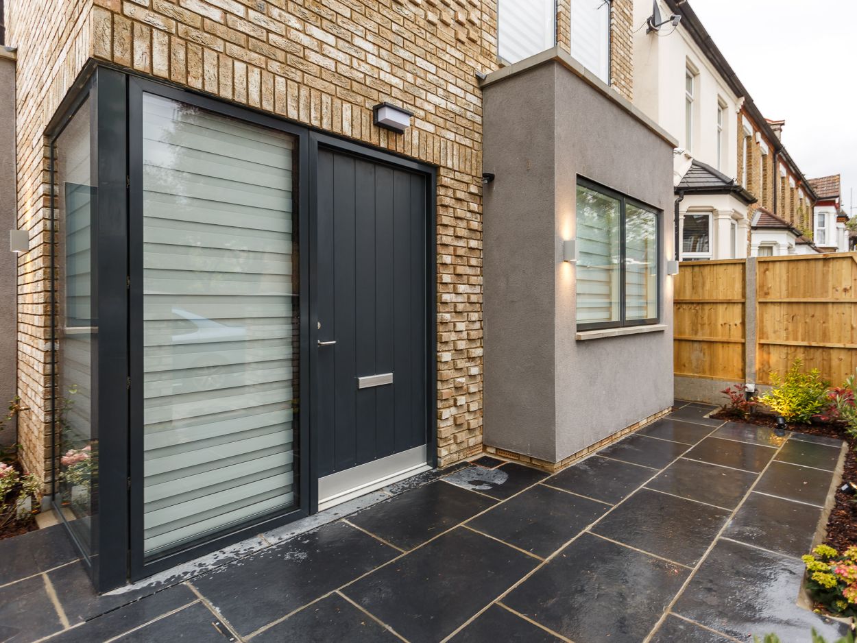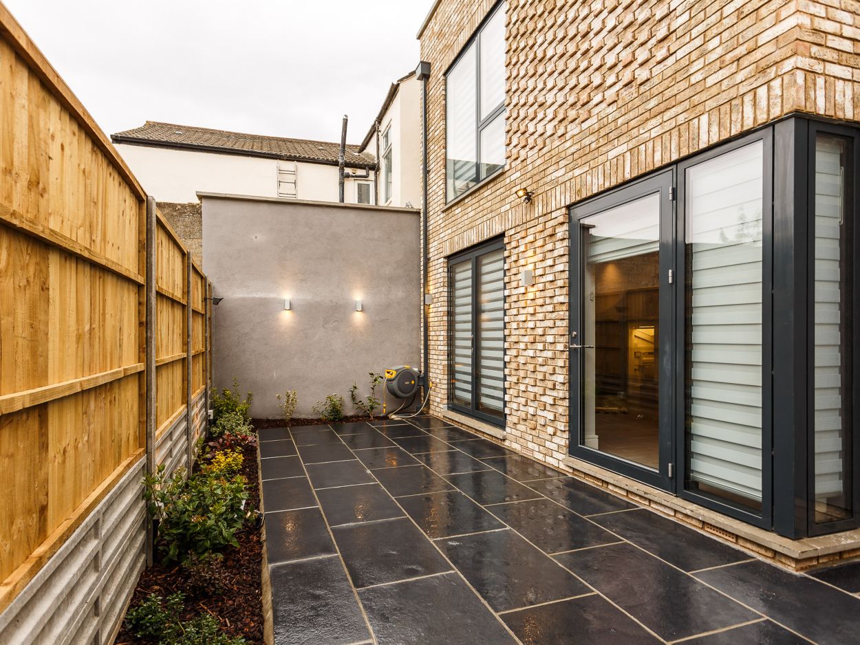 The proposal sought the demolition of three garages to provide a three bedroom, three storey family dwelling. The combination of a richly texture brick with a light coloured render is completed with a zinc mono pitched roof and wrap around glazing.