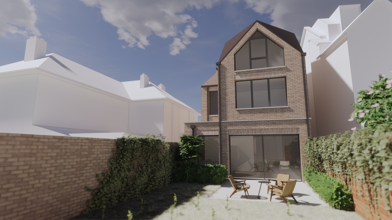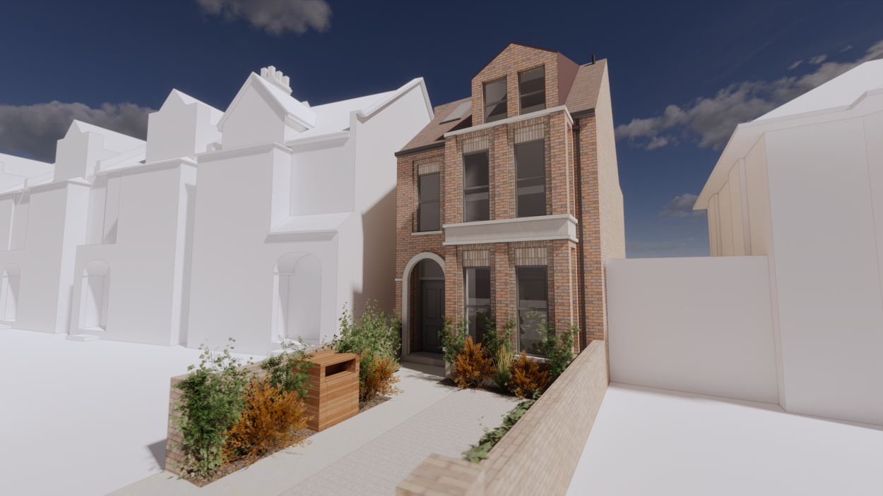 A vacant plot within a residential street provided the opportunity for a detached family dwelling. The design approach takes inspiration from the period properties along the street whilst overcoming the constraints of the site and neighbouring impact. Using traditional materials and detailing to articulate the façade and positively contribute to the street character.
