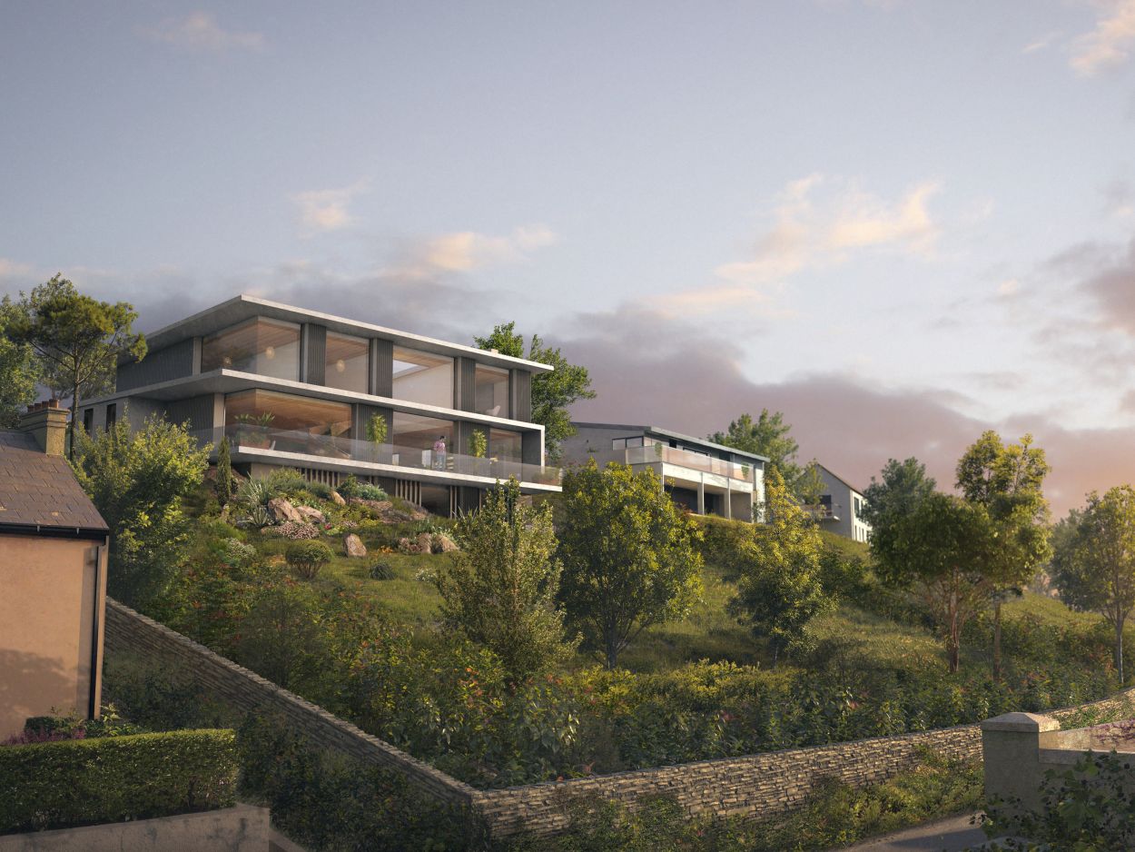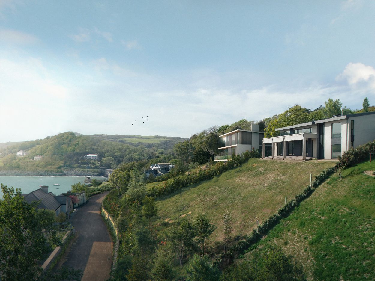 The site is located about an hour's drive west of Cork city and overlooks the harbour at Glandore. The proposal seeks to integrate two new houses into the landscape whilst maximising the sea views.