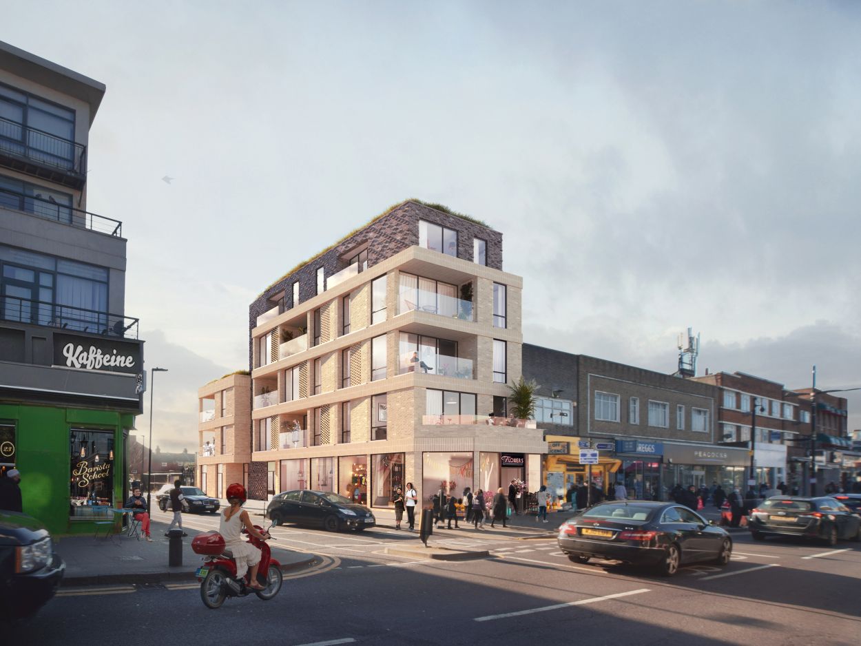 Redevelopment of a prominent corner site on a popular High Street. The scheme retains commercial space at ground and nine residential apartments over first, second, third and fourth floors.