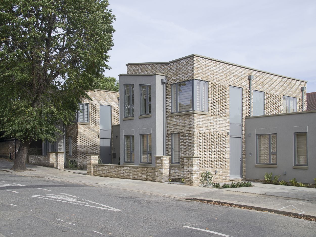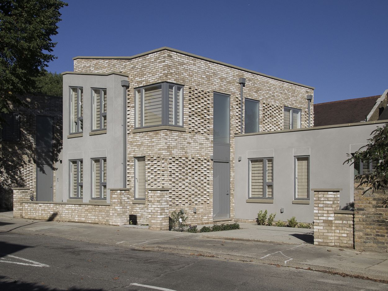 Originally consisting of six derelict garages within a sensitive conservation area, the proposal provides a pair of family houses with off-street parking and courtyard landscaping.