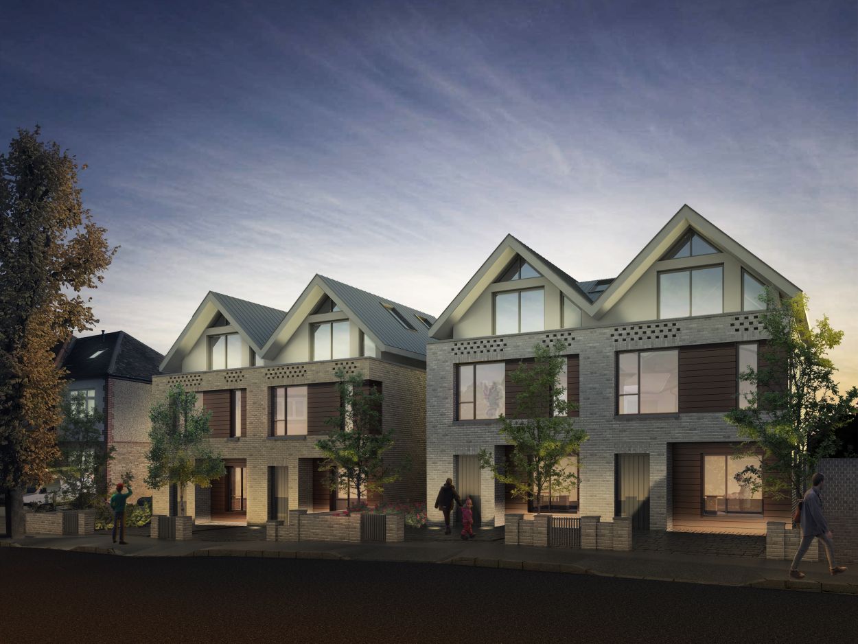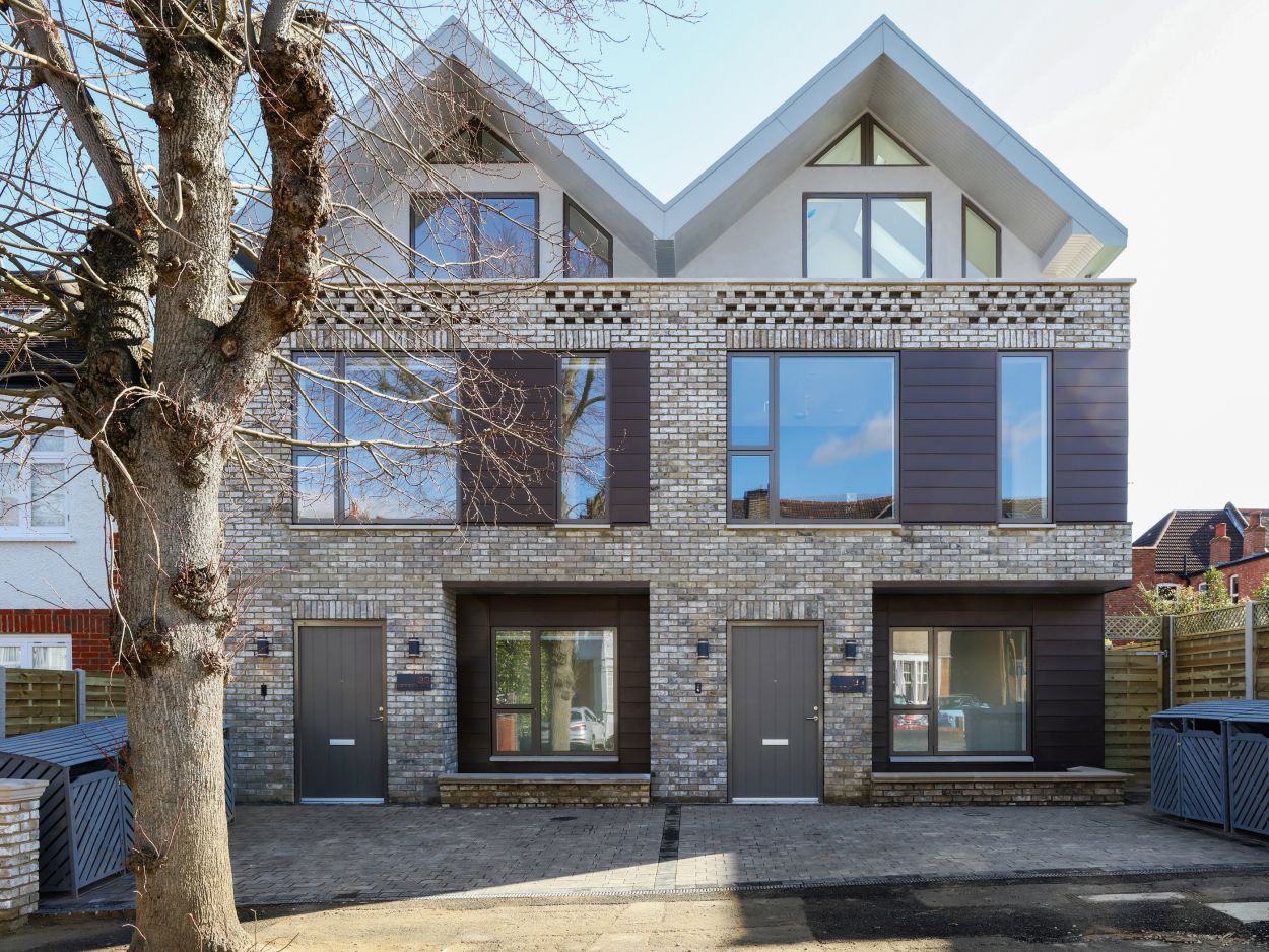 The semi-detached pair of houses completes a comprehensive redevelopment of the plot,which also features eight apartments to the Victorian building at the front of the site.