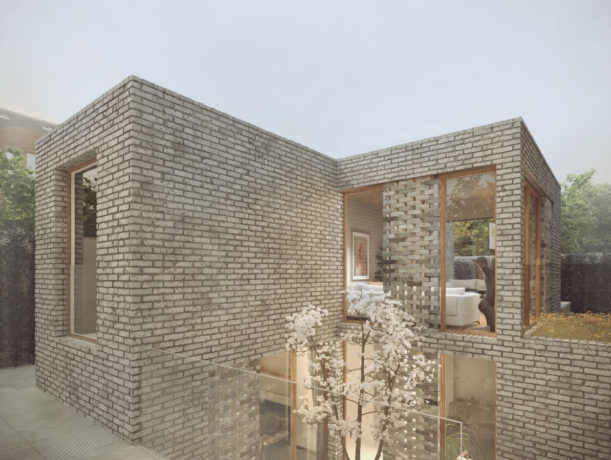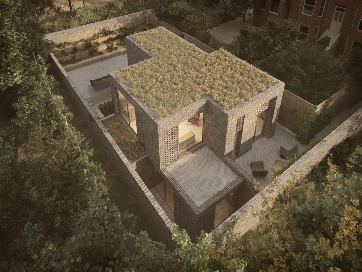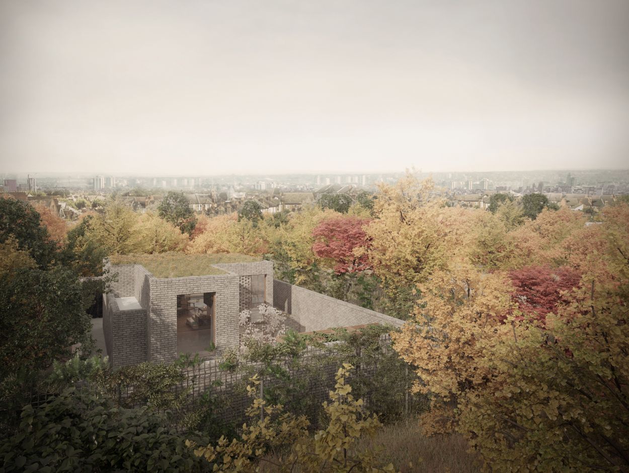 Backland house with sunken courtyards provide seclusion and privacy while the upper levels maximise the aspect and views over the local park.