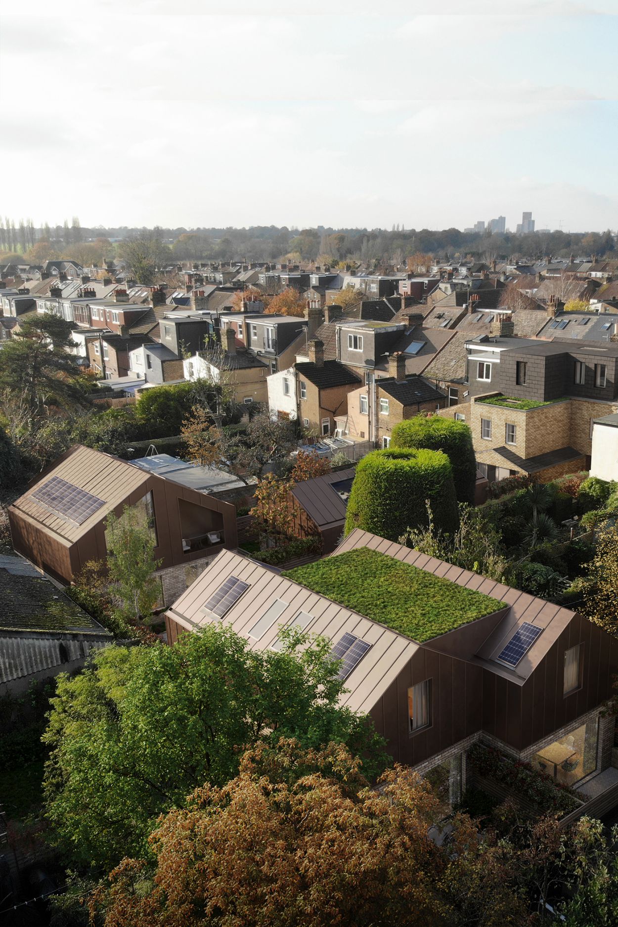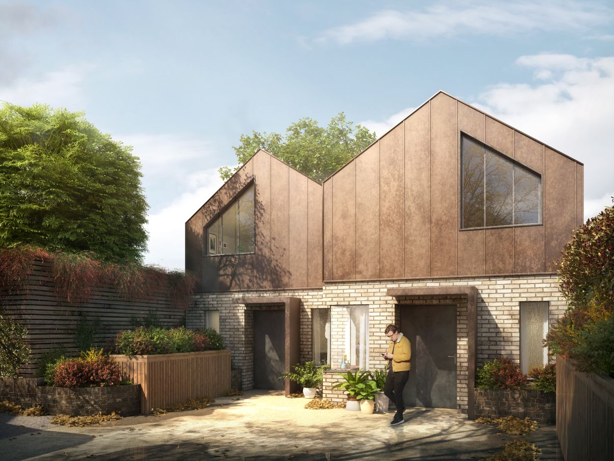 An awkward and constrained site provided a significant challenge and opportunity. The mews-style development provides five apartments and three family dwellings. The careful siting of the buildings ensures a harmonious coexistence with neighbouring amenity, introducing charming courtyards and open spaces. Our approach endeavours to maintain a respectful dialogue with the existing context, employing textured brickwork and copper cladding. A focus on quality of materials and meticulous detailing articulates contemporary elegance.