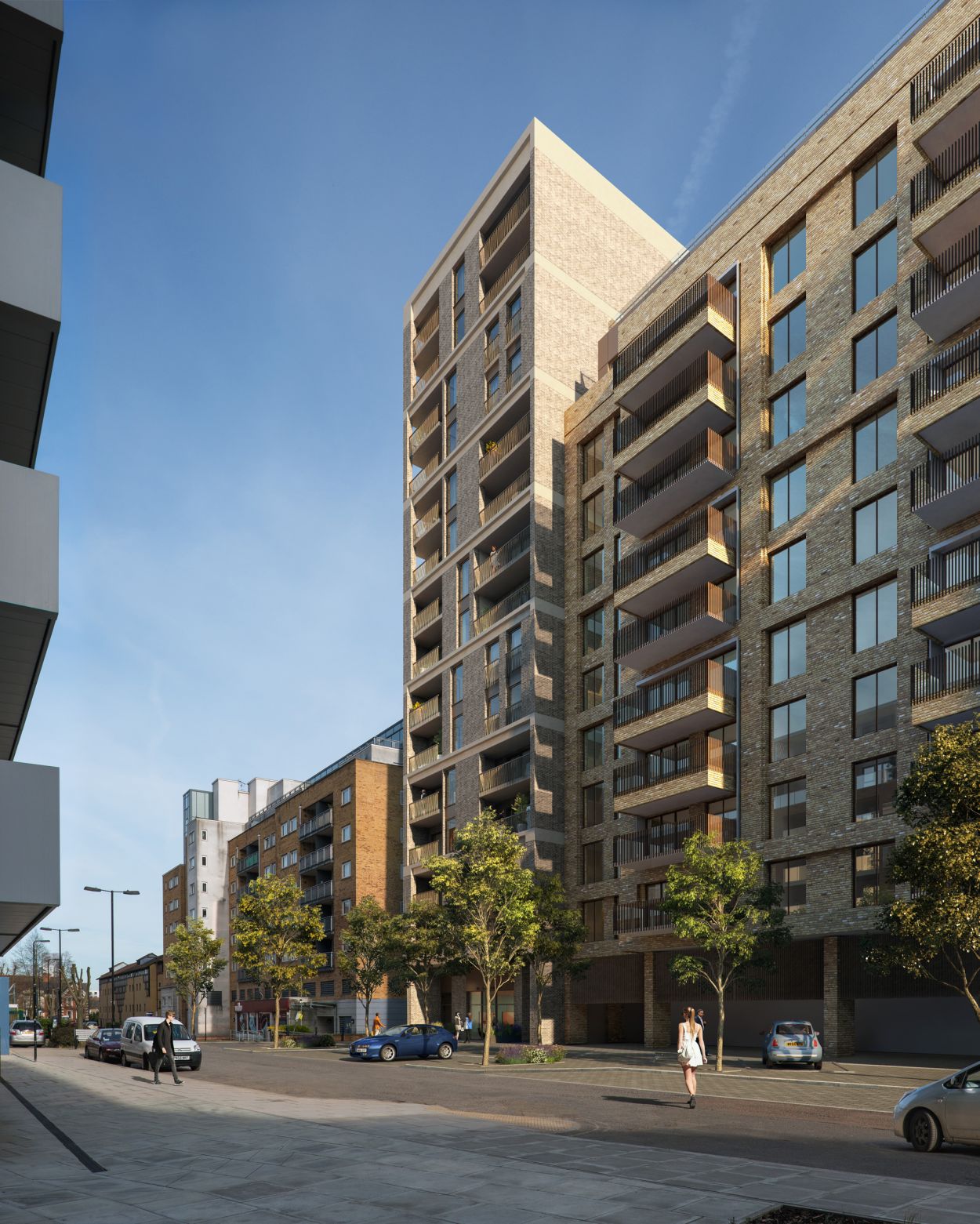 Redevelopment of an urban infill site to provide 120 mixed tenure residential units and new flexible retail space to support and enhance the local West Ealing area and the wider Metropolitan Town Centre. The development comprises of varying building heights ranging from 7 to 15 storeys, a raised podium garden, communal roof terraces and connection to the District Heating Centre.